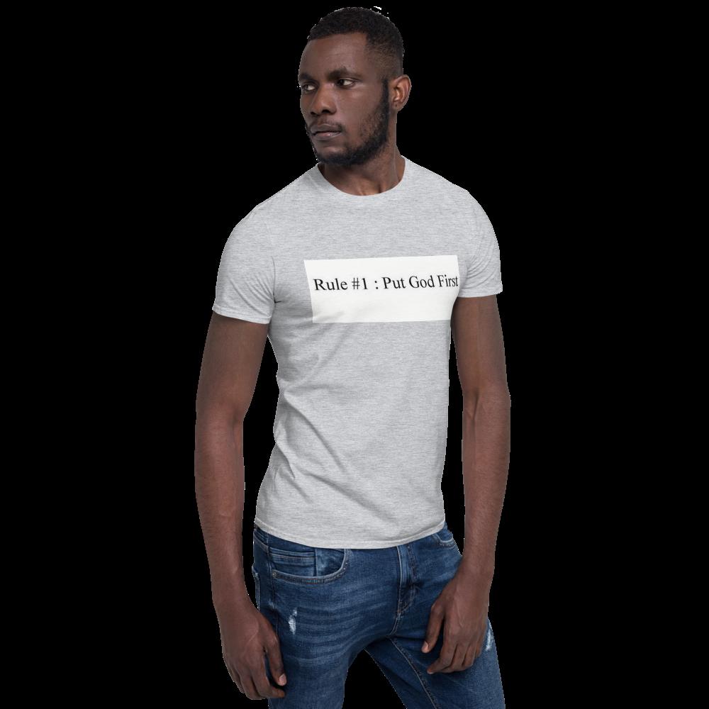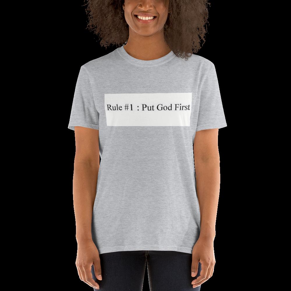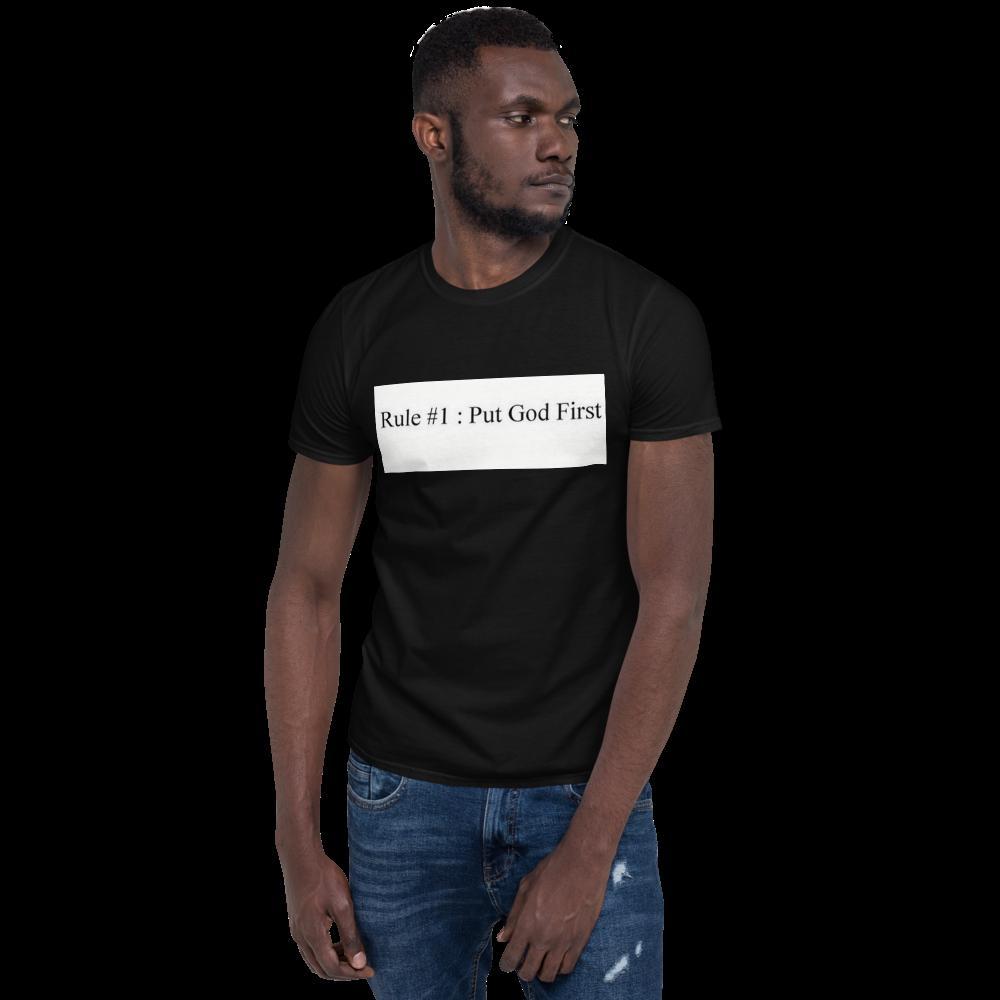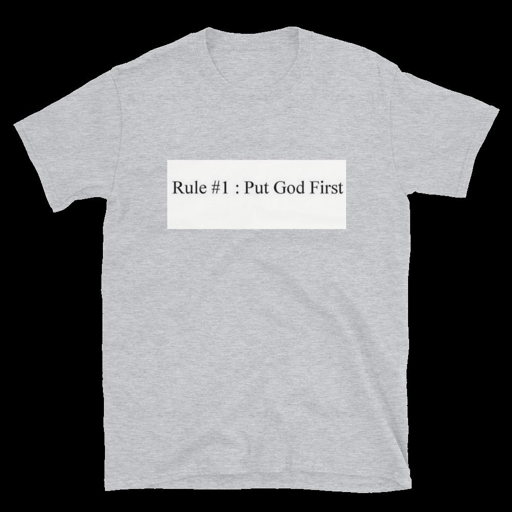 You've now found the "PUT GOD 1ST" t-shirt for your wardrobe. It's made of a thicker, heavier cotton, but it's still soft and comfy. And the double stitching on the neckline and sleeves add more durability to what is sure to be a favorite!