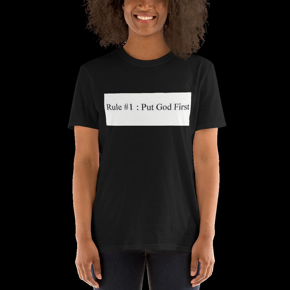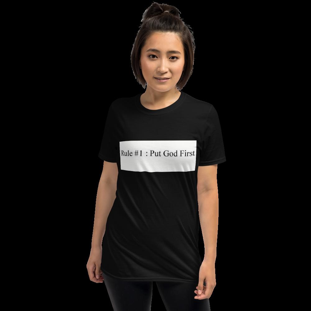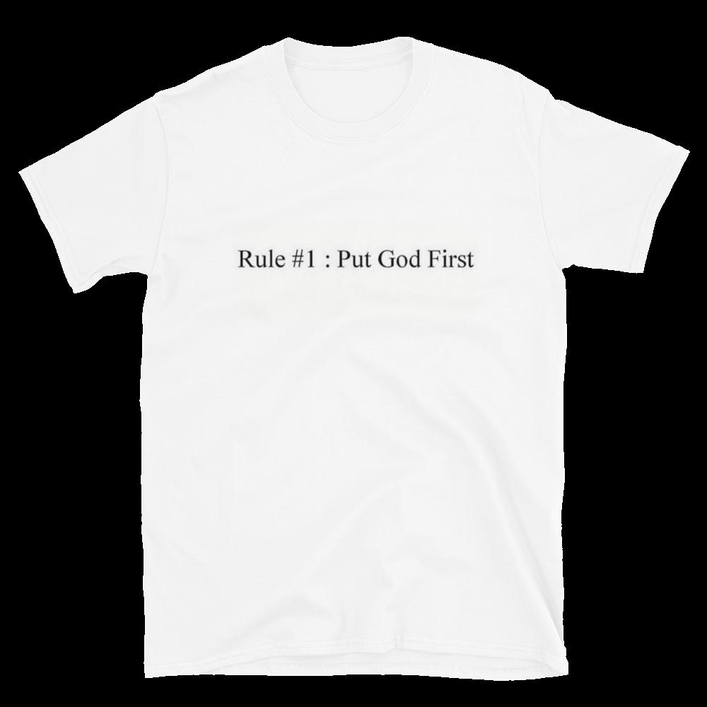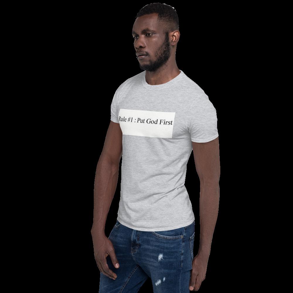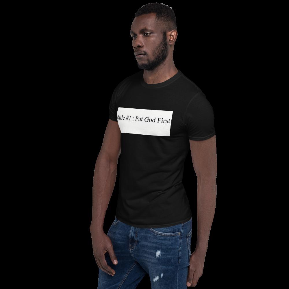 You've now found the "PUT GOD 1ST" t-shirt for your wardrobe. It's made of a thicker, heavier cotton, but it's still soft and comfy. And the double stitching on the neckline and sleeves add more durability to what is sure to be a favorite!