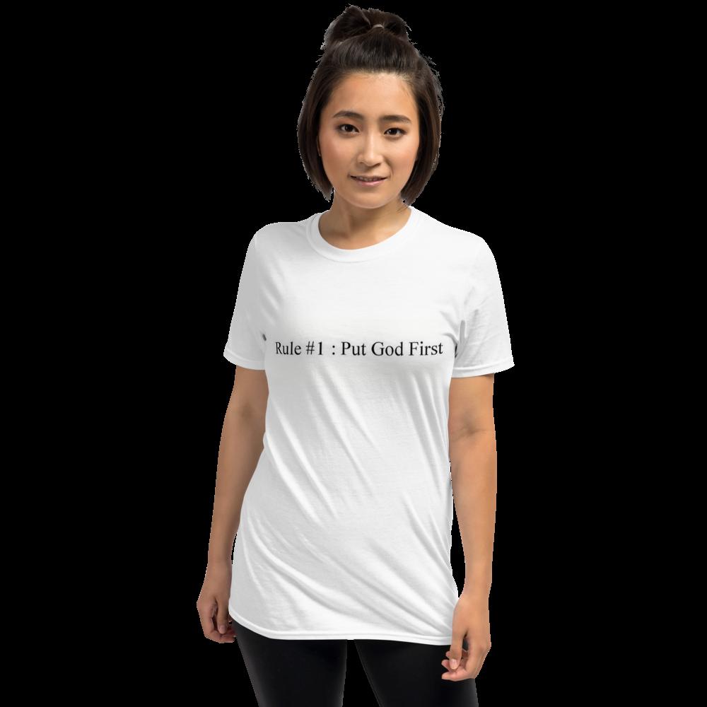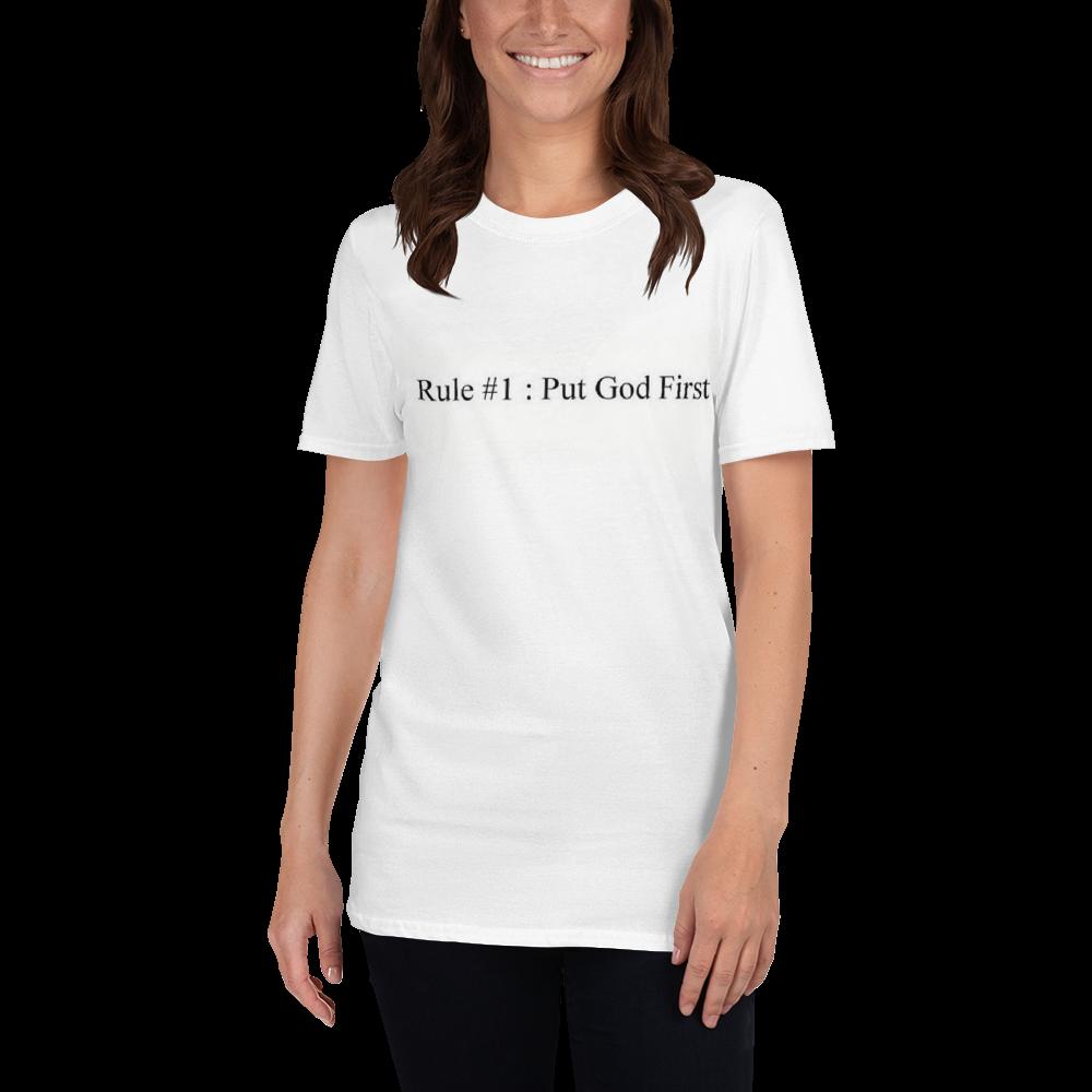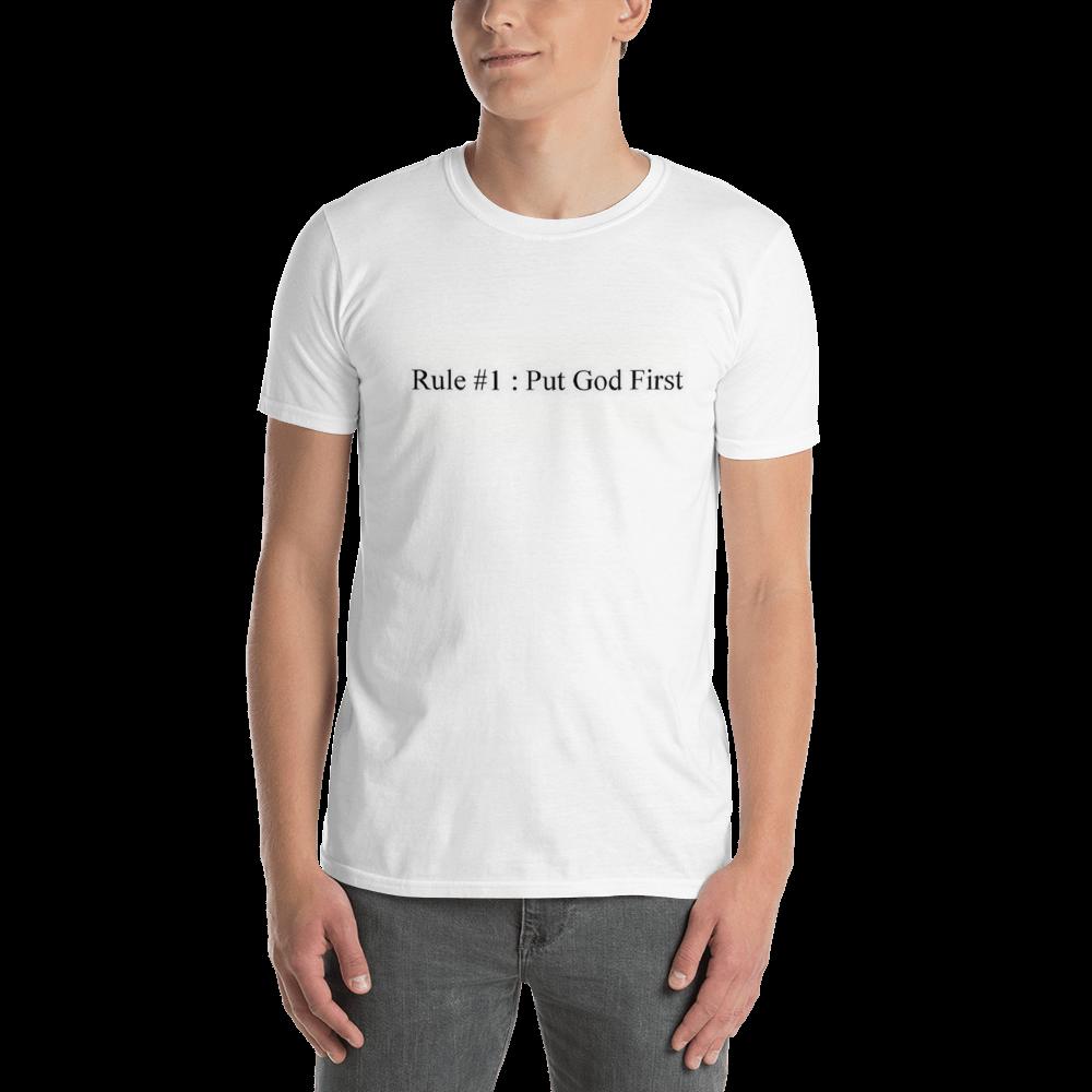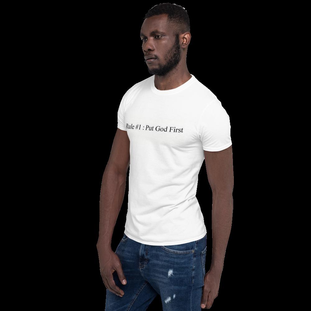 You've now found the "PUT GOD 1ST" t-shirt for your wardrobe. It's made of a thicker, heavier cotton, but it's still soft and comfy. And the double stitching on the neckline and sleeves add more durability to what is sure to be a favorite!